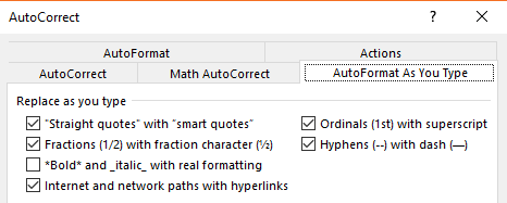 Word Options Auto Correct